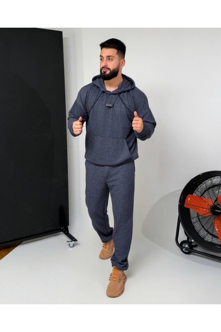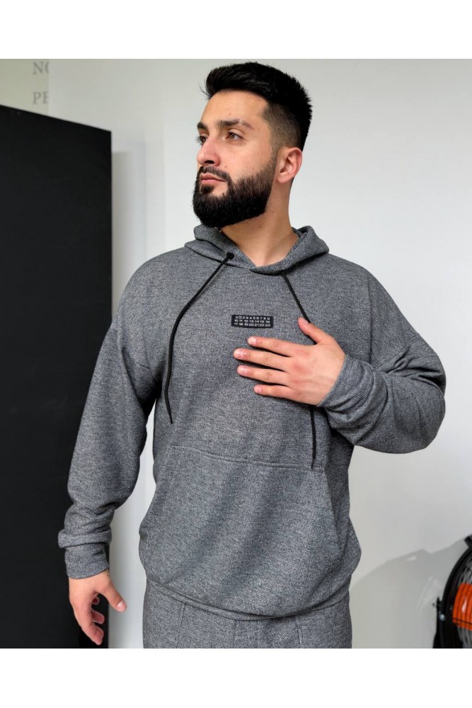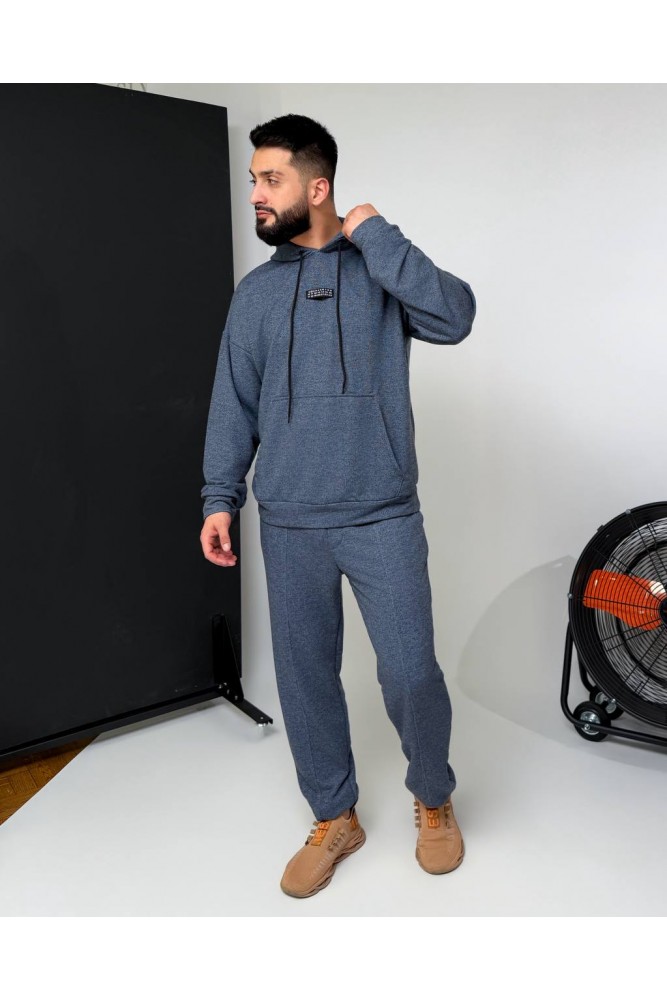 Зручний костюм:худі з капюшоном і кишенею-кенгуру,з декоративним елементом на грудях+штани на резинці зі шнурком-фіксатором і кишенями,з манжетами внизу.