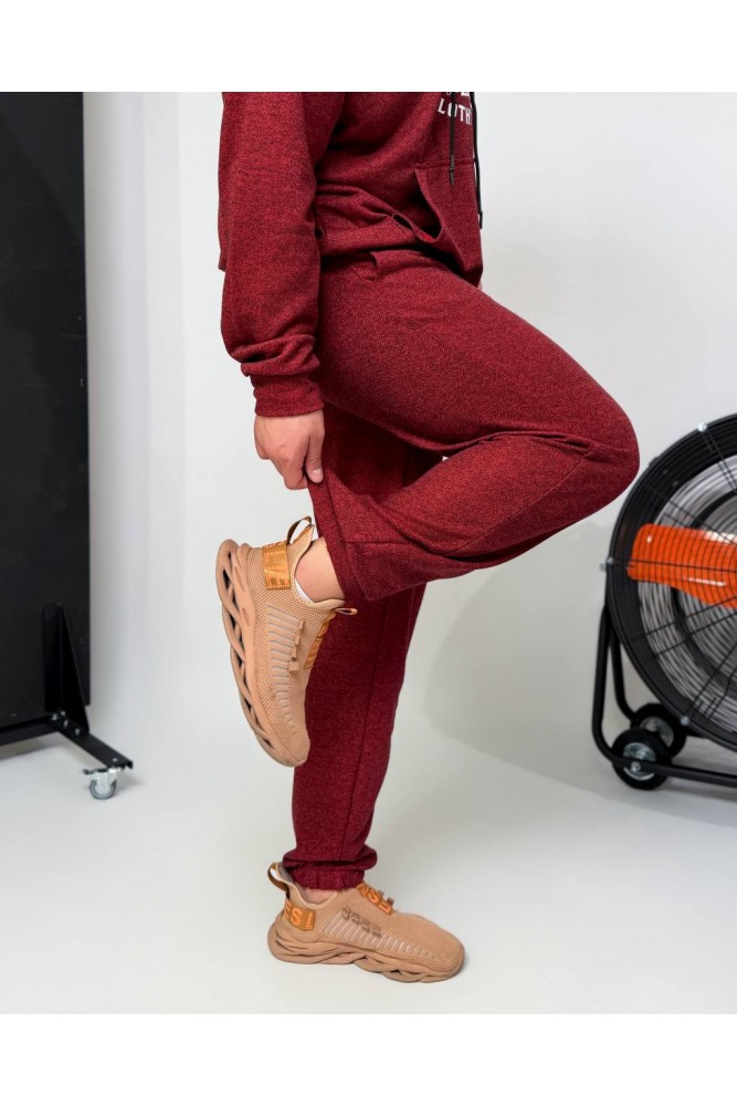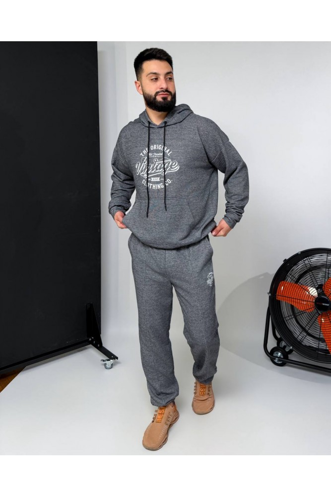 Зручний костюм:худі з капюшоном і кишенею-кенгуру,з декоративним елементом на грудях+штани на резинці зі шнурком-фіксатором і кишенями,з манжетами внизу.