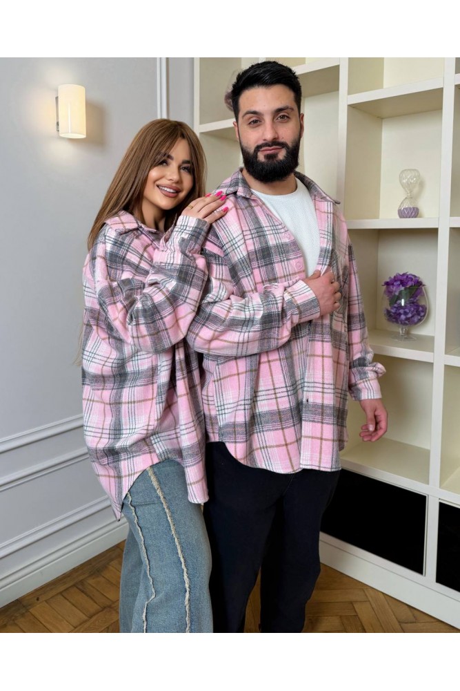 Стильна сорочка в клітинку:вільний крій,комір і довгі рукави з манжетами на ґудзиках.Преміальна якість пошиття!