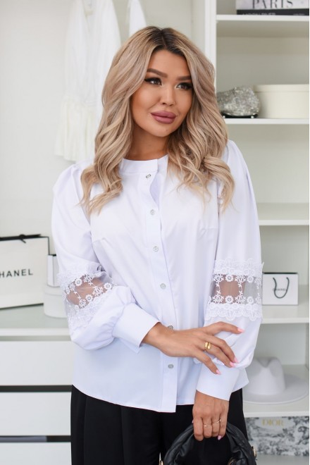 Блуза з ніжним мереживом – ідеальний вибір для створення елегантного образу. Легка тканина ідеально сідає на фігуру, додаючи вашому стилю вишуканості.