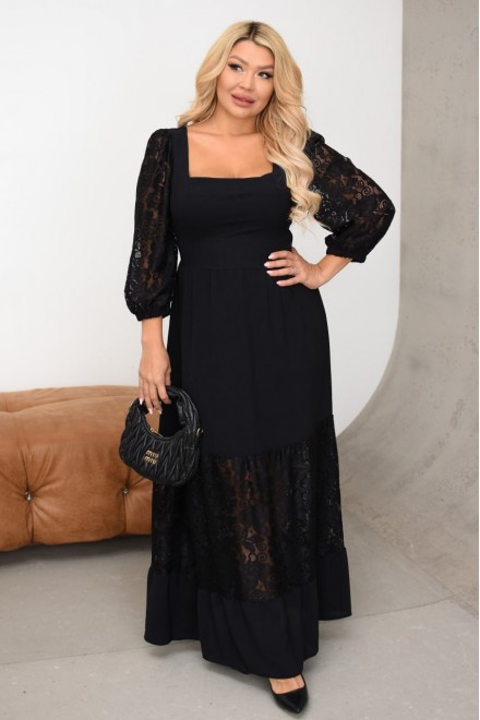 Елегантна комбінована максі-сукня із фактурної жатки та гіпюру. Ідеальний вибір для урочистих подій, романтичних вечорів чи стильних фото!