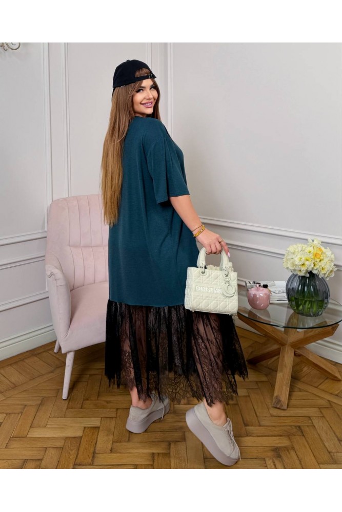 Сукня вільного силуету,зручна та легка у носінні.Низ прикрашений витонченим мереживом,яке додає образу ніжності та жіночності.