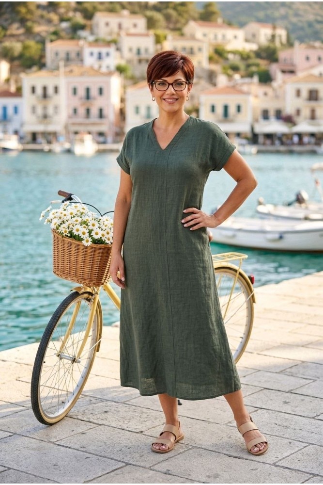 Стильна, легка, приємна до тіла сукня. З боків розрізи.