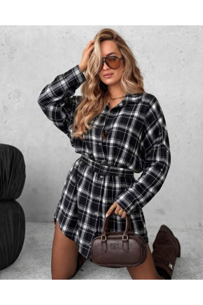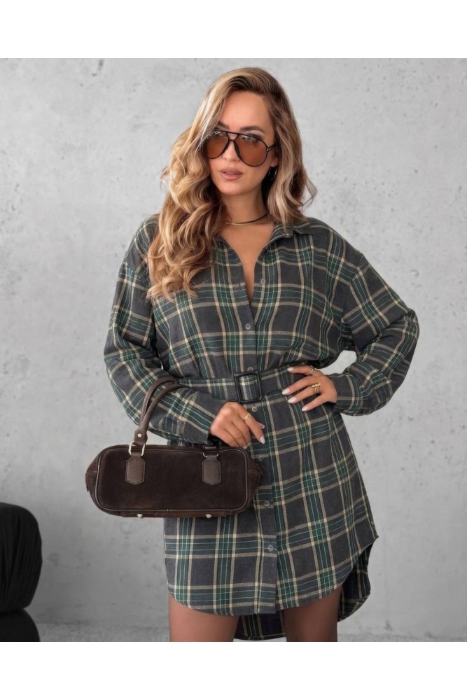 Стильна сукня-сорочка у трендову клітинку:вільний крій,класичний комір і довгі рукави з манжетами на ґудзиках.Рукави можна підвертати та фіксувати на ґудзик.Пояс підкреслює талію та додає жіночності образу.