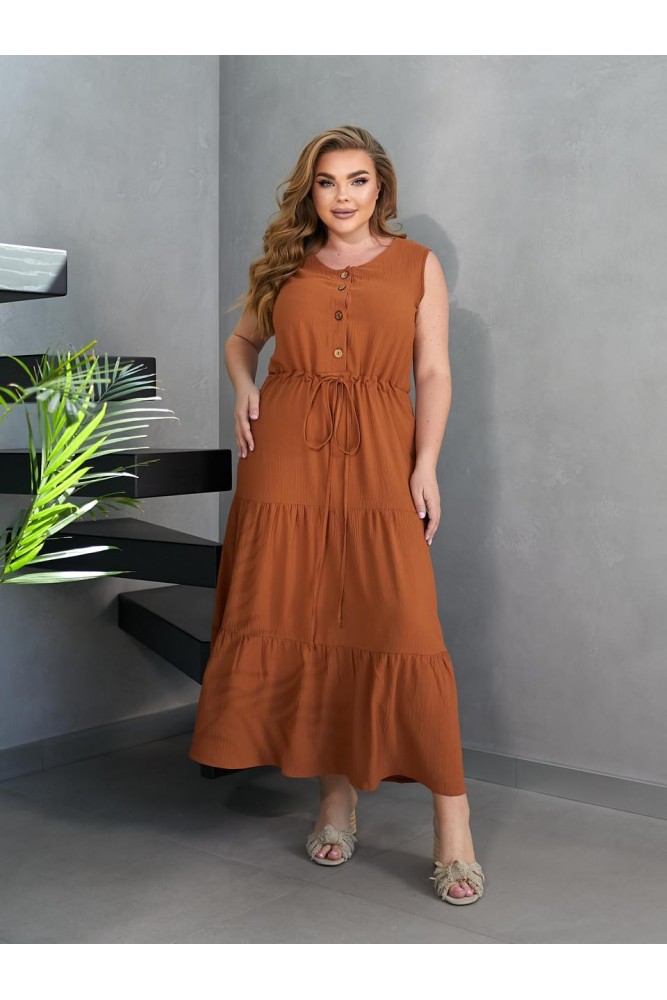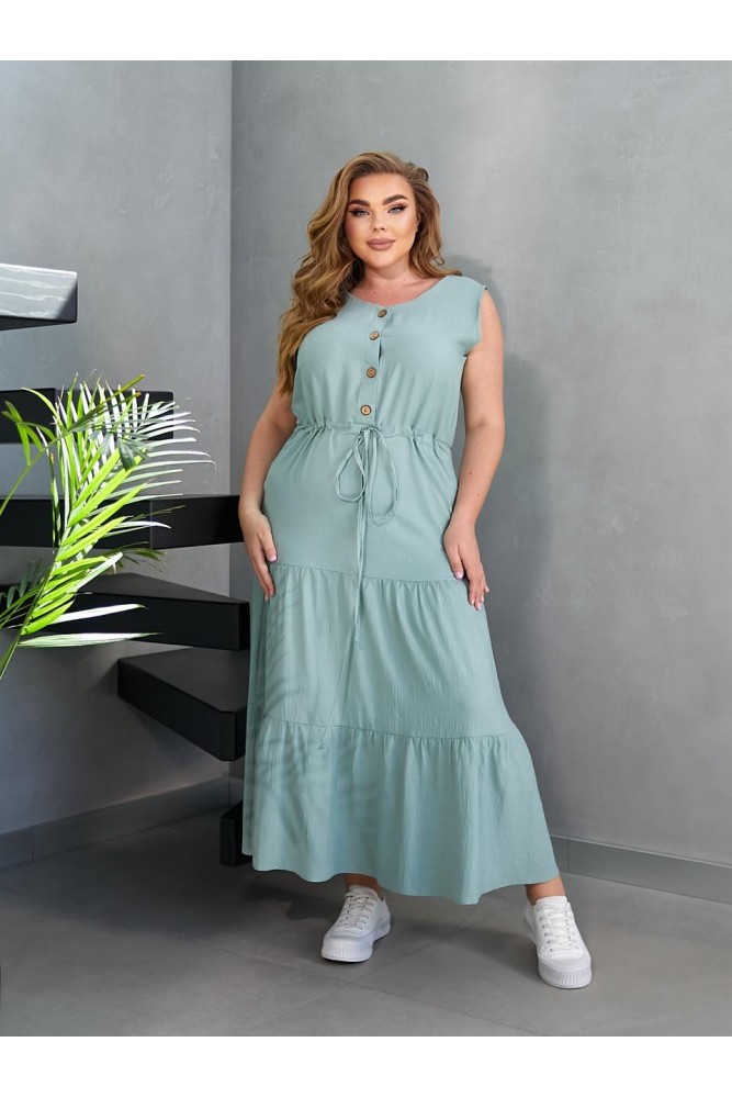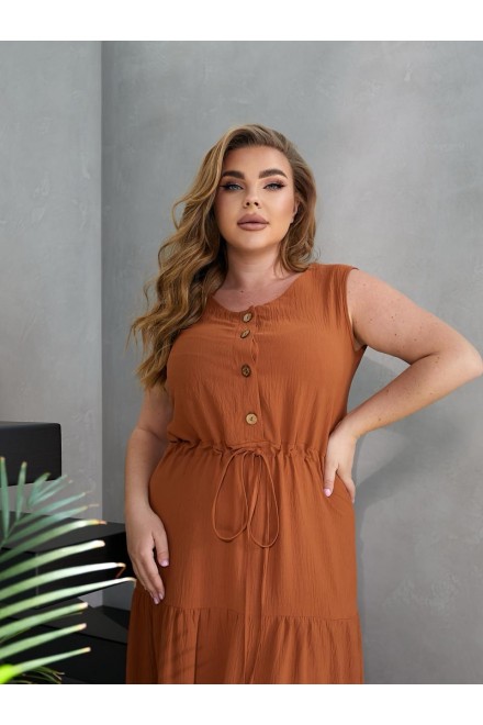 Сарафан А-силуету з куліскою на талії, застібається гудзиками, низ сукні із двох воланів