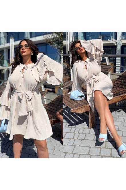 ✨Легка сукня oversize з рукавами-воланами та поясом на талії