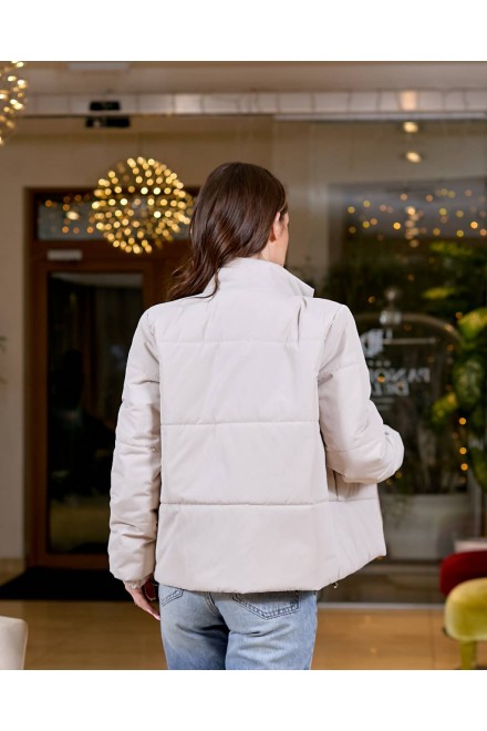 Комір стійка , на блискавці , по низу прихована куліска з гумкою яка фіксується стопорами , яка дає можливість носити як затягнуту і вкорочену так і подовжену і пряму , та рігулявати довжину