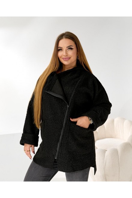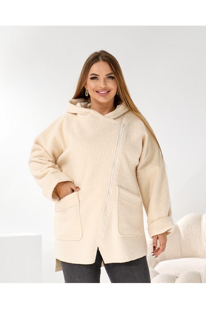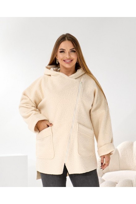 Оверсайз фасон зі спущеним плечем та асиметричною косою застібкою-блискавкою створює сучасний та стильний образ.