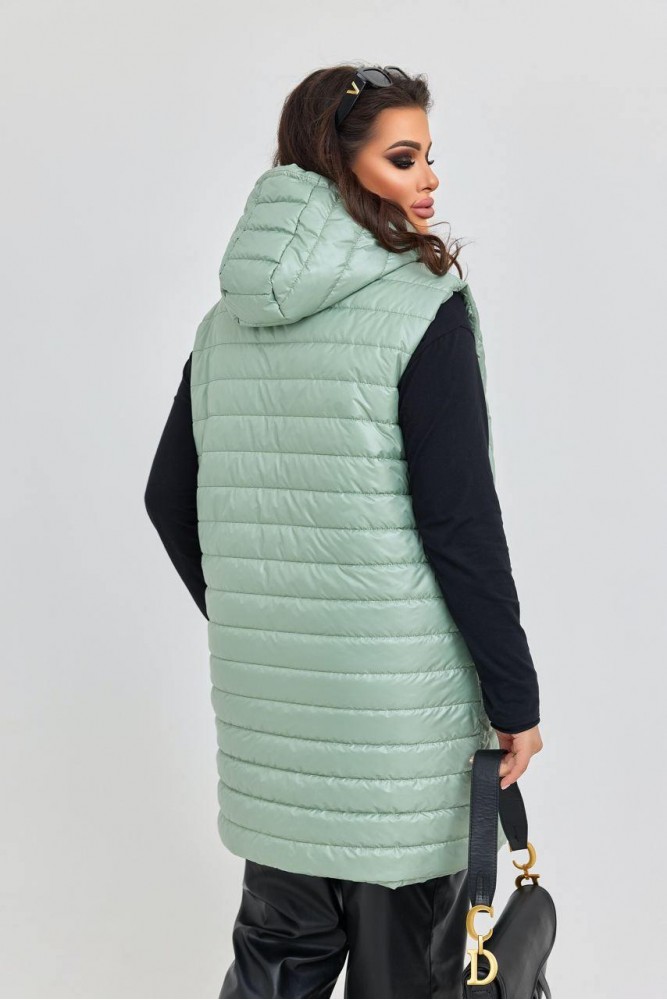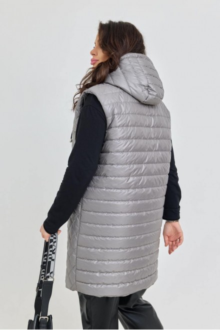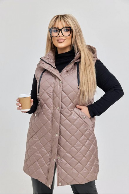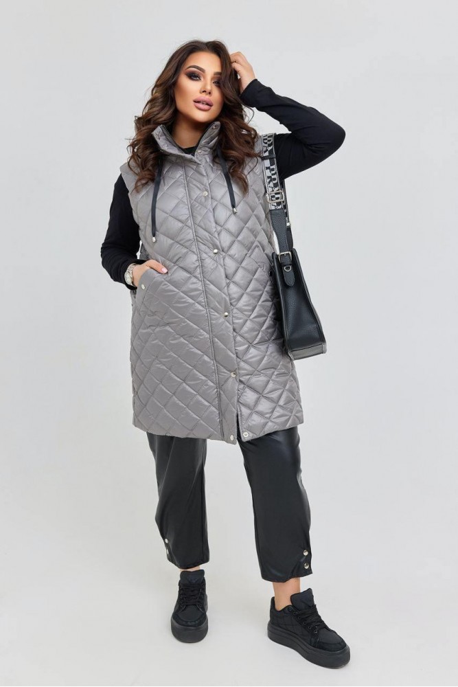 Оригінальне поєднання двох видів стібки. Перед виконаний зі стібки "Ромб", спинка зі стібки "Смужка". Вітрозахисна планка та прорізні кишені на кнопках. Капюшон затягується контрастним по кольору шнуром.