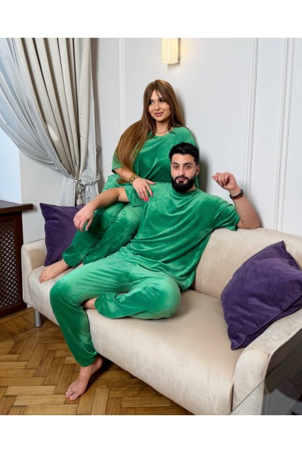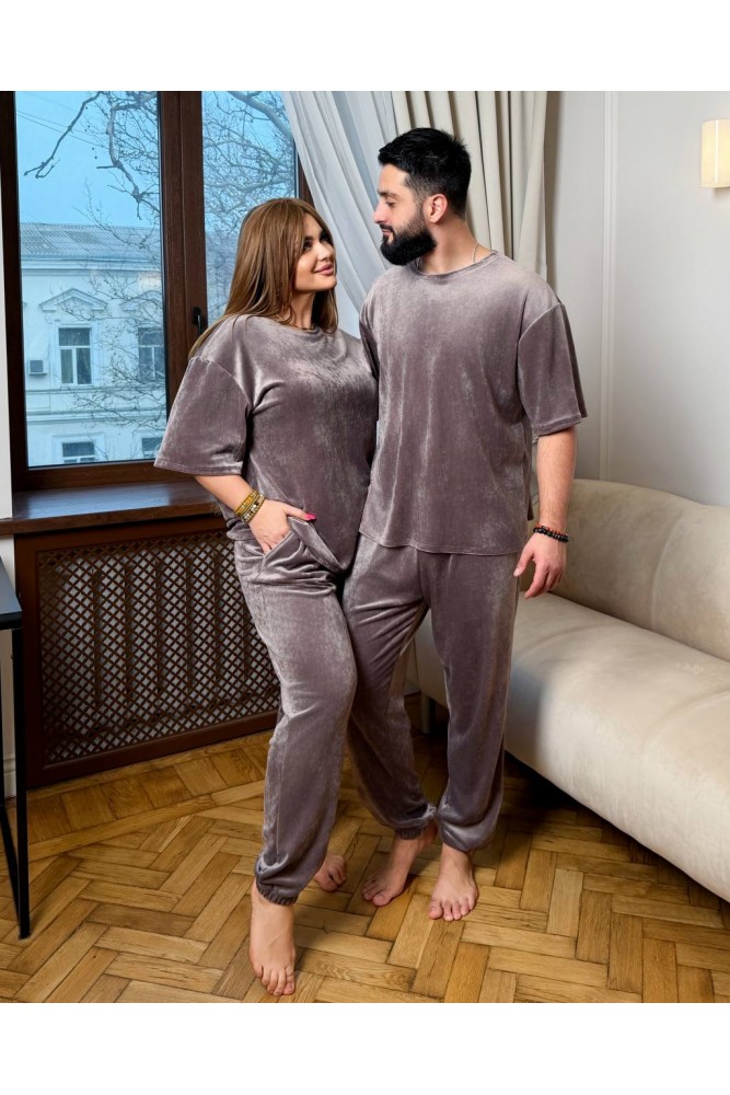 Зручний комплект,який складається з вільної футболки та штанів на резинці зі шнурком і манжетами внизу-ідеальний варіант для дому та відпочинку.
