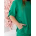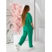 Блуза вільного крою з розрізами з боків та декоративними ґудзиками, довжина рукава регулюється патиком. Штани палаццо з високою посадкою, пояс на гумці.