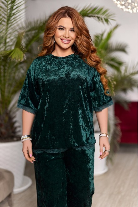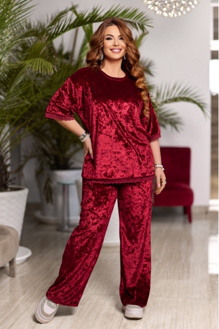 Стильний комплект ідеально впишеться у Ваш весняно-літній гардероб. Костюм вільного крою виконаний із велюру. Зручні вільні штани з поясом на резинці ідеально сидять на фігурі і візуально струнять та витягують фігуру. У бічних швах штанів виконані функціональні кишені. Блуза прямого силуету, вільного крою зі спущеним плечем. Модель ідеально підходить для активних прогулянок, подорожей чи відпочинку вдома.