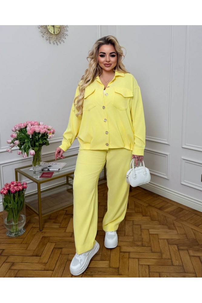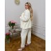 Костюм складається з сорочки-жакета на ґудзиках та зручних штанів із високою посадкою.