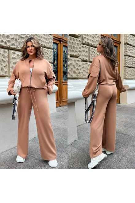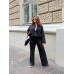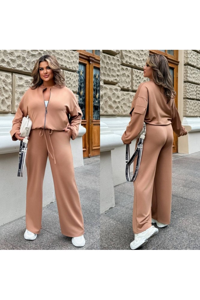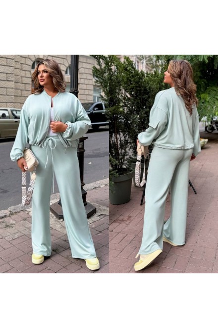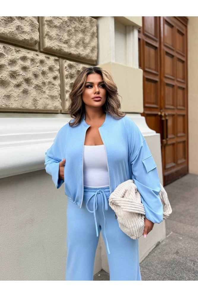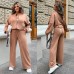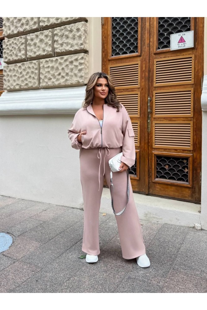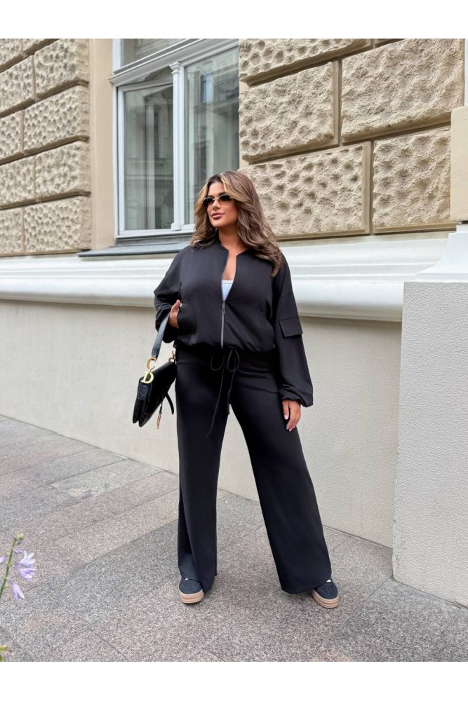 Стильний костюм з просторими штанами на резинці зі шнурком і кишенями та укороченою кофтою зі спущеним плечем і резинкою по низу.