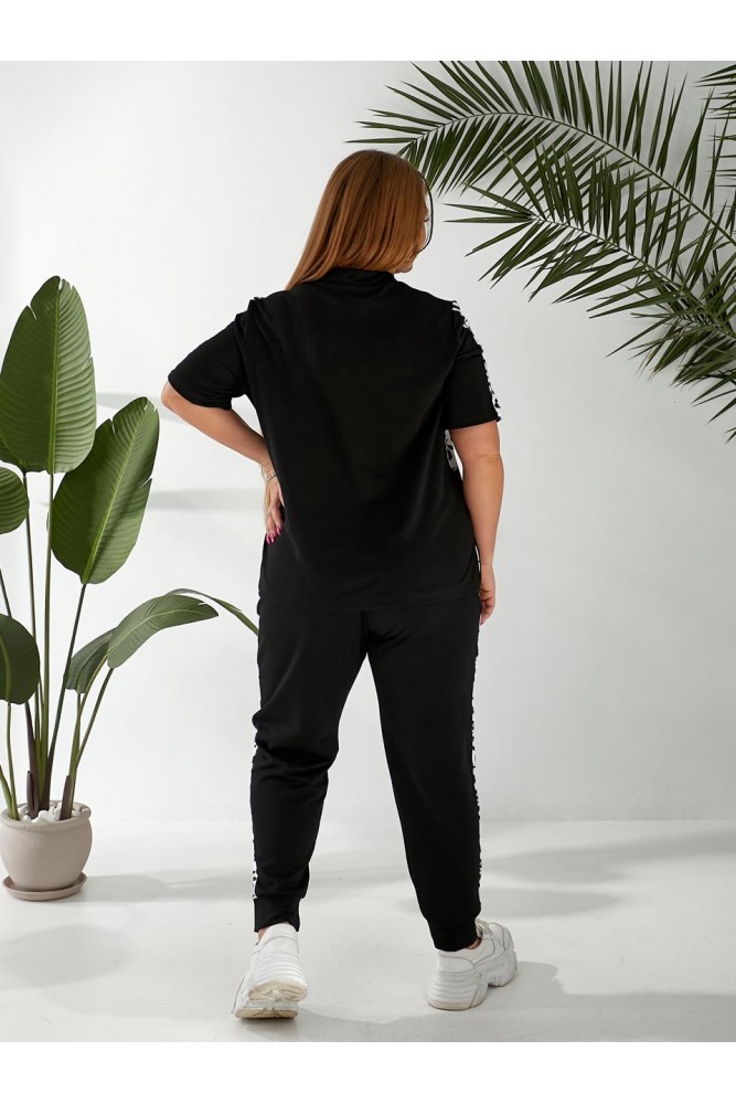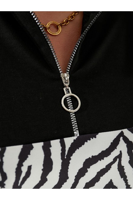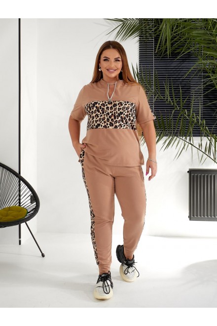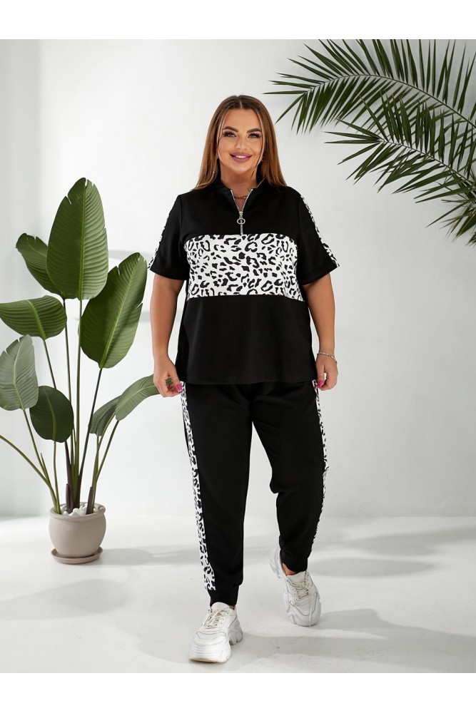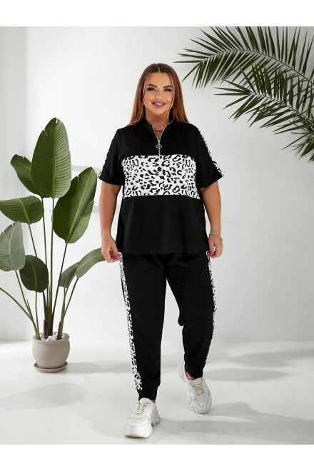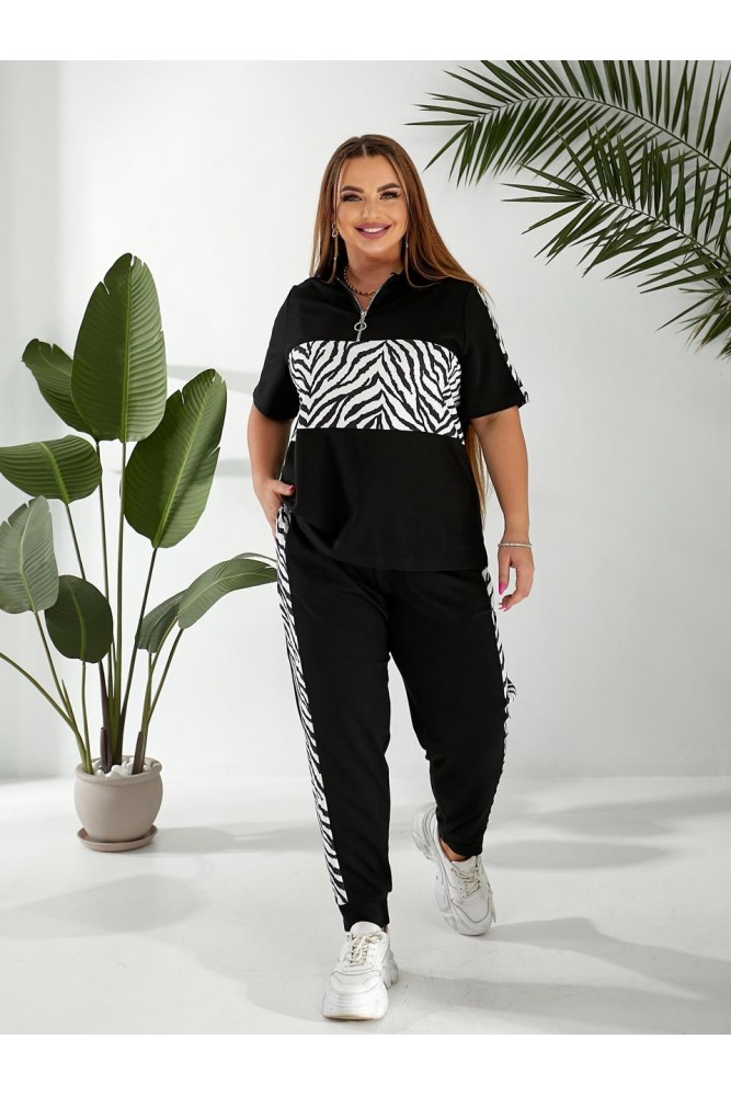 Яскравий прогулянковий костюм з використанням принтованих вставок "Леопард" і "Зебра. Кофта вільного крою з декоративною блискавкою на горловині. Штани з високою посадкою, талія на резинці, низ наманжетах.